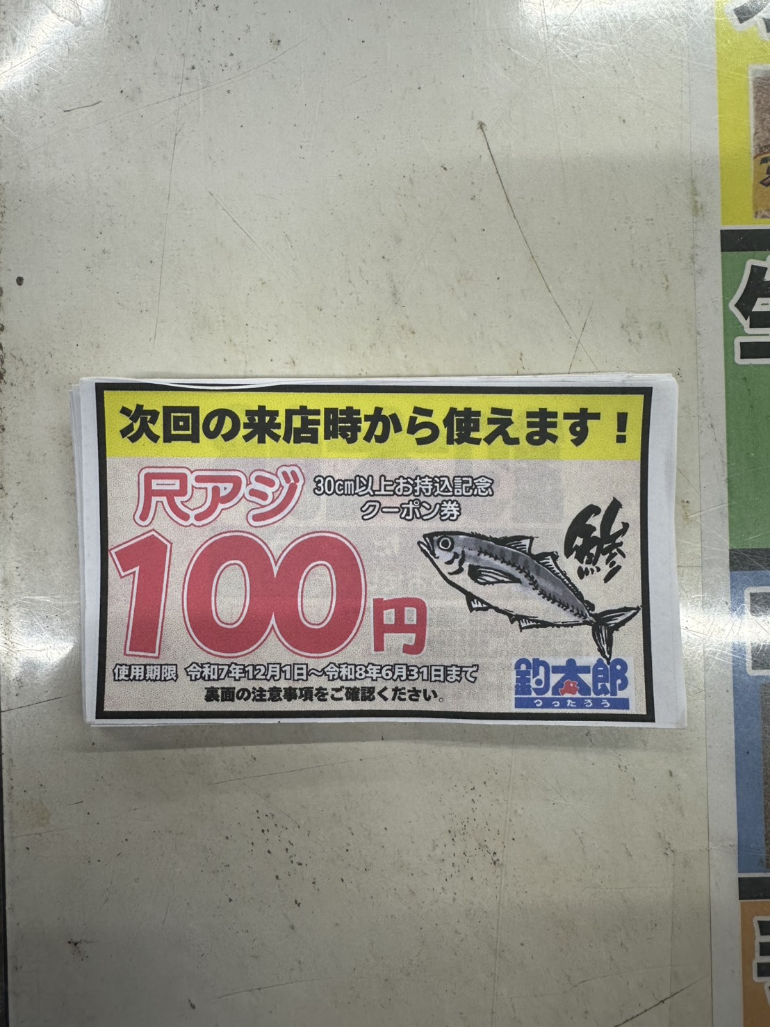 アジの持ち込みクーポンも実施しています、釣られた際には是非釣ったろうにお越しください。