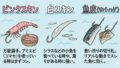 • 解説: 水温が上がり活性が高まると、動物性タンパク質を求めて小エビやゴカイ類をどん欲に食べます。