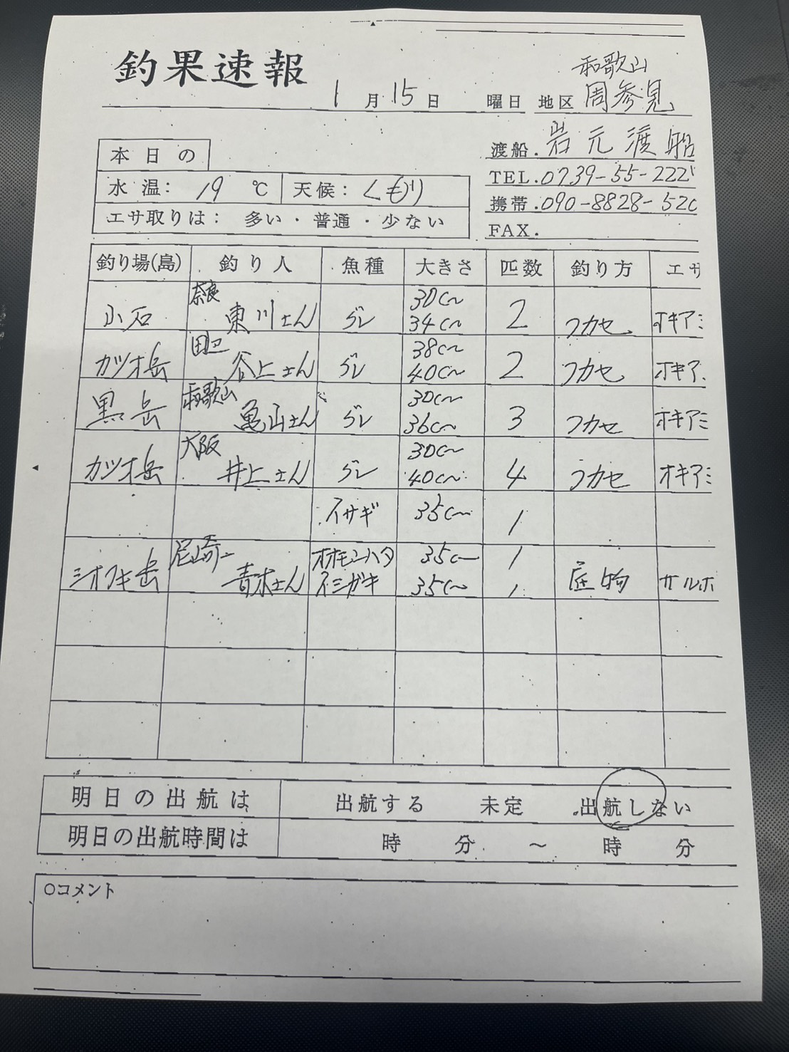 明日1/16はすさみ町の岩元渡船さん休船日です!