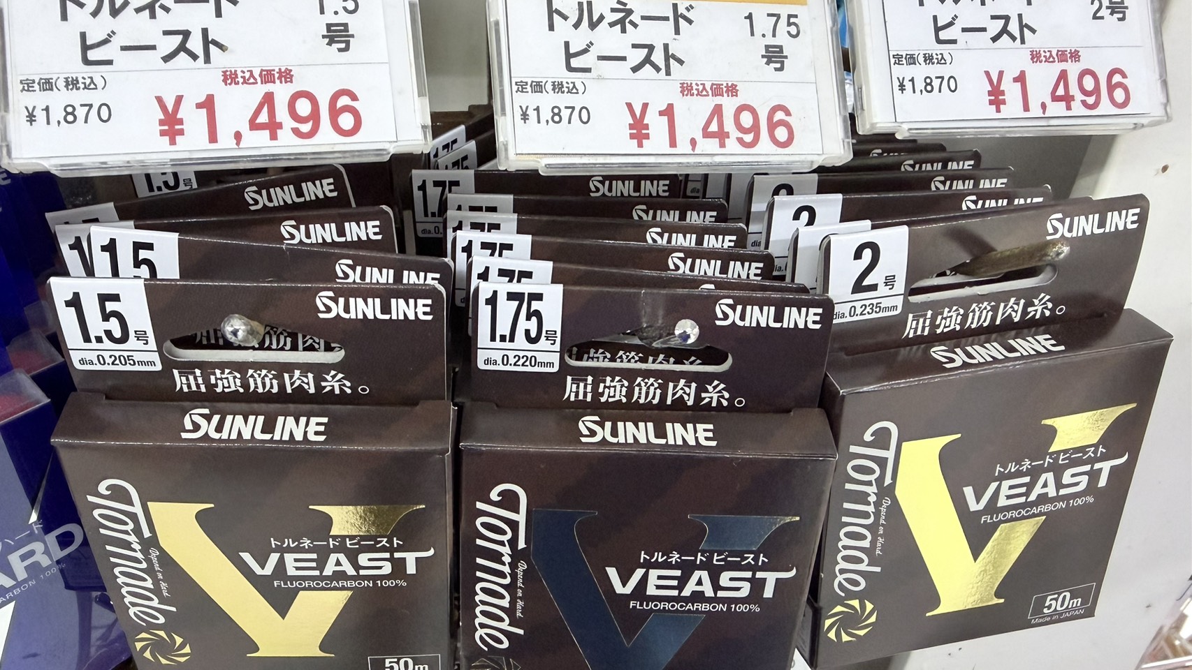 メーカーのサンラインには、硬めのハリス「Vハード」もあります。