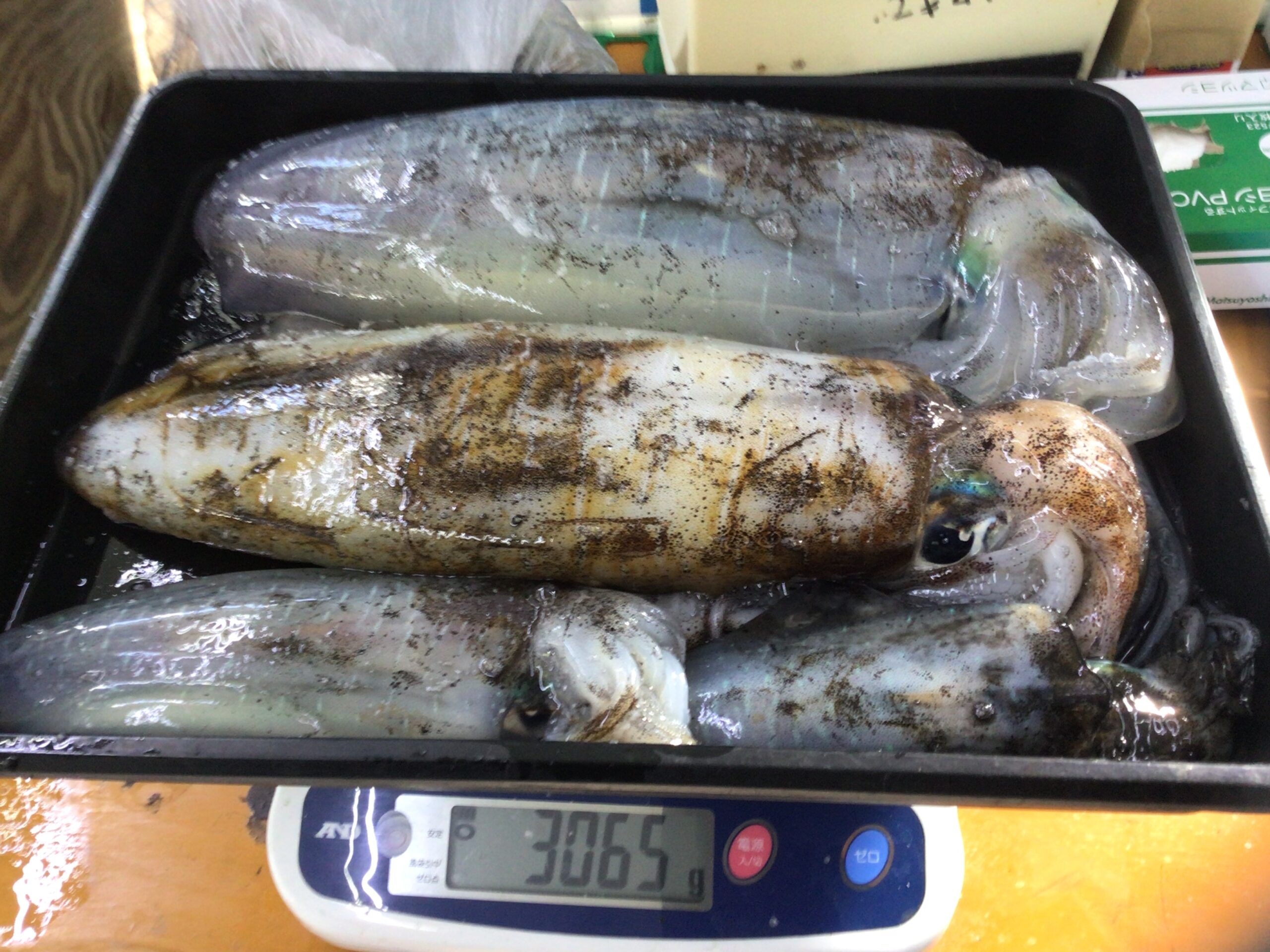 1/17 アオリイカの釣果 3065g(4杯) 田辺天神崎、ヤエン釣りにて