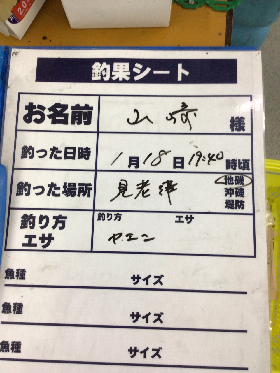 1/18 (日) 見老津地磯にてアオリイカ1.58キロ他5杯計5キロ ヤエンにて