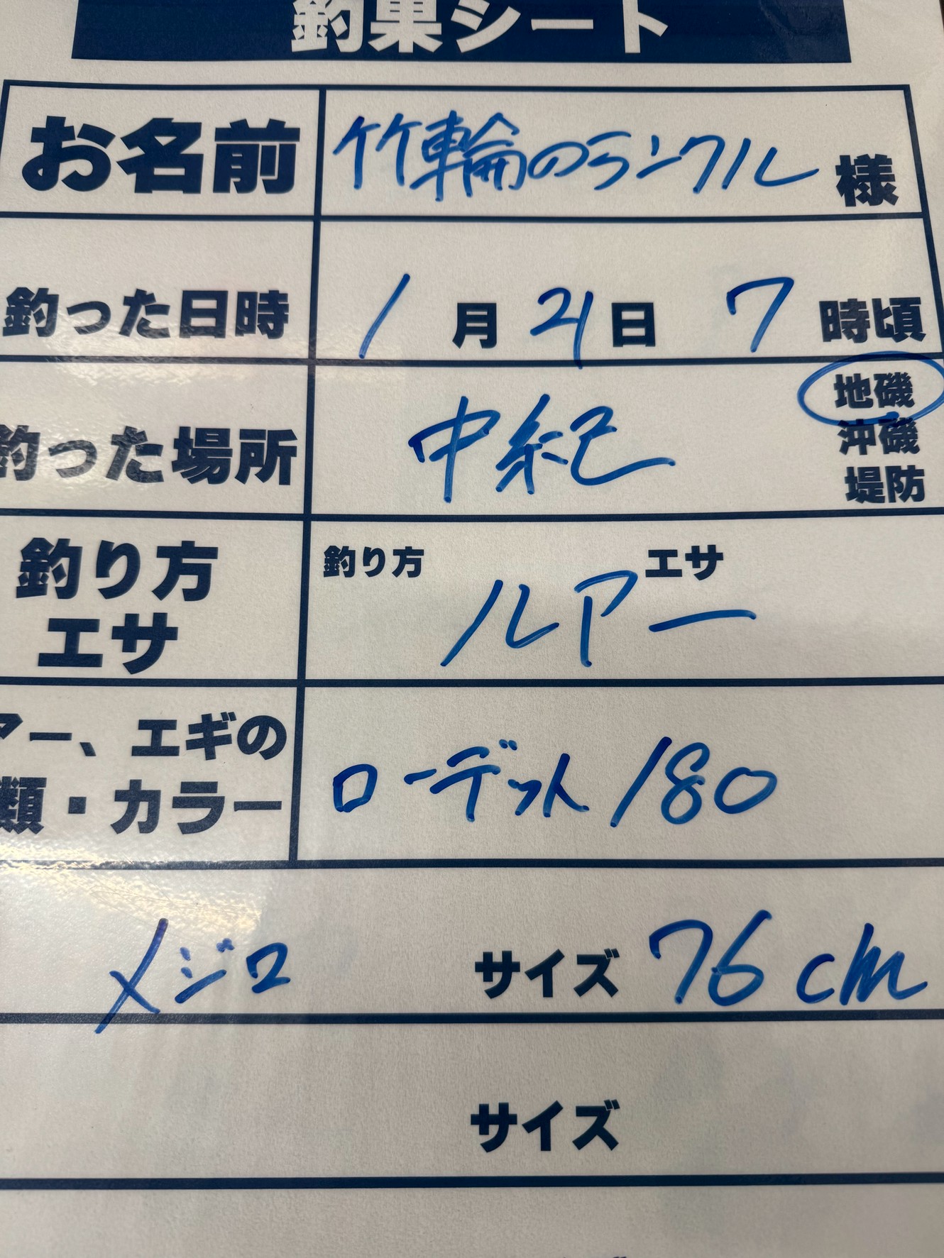 ブリ76㎝の釣果。ルアー・ローデット180