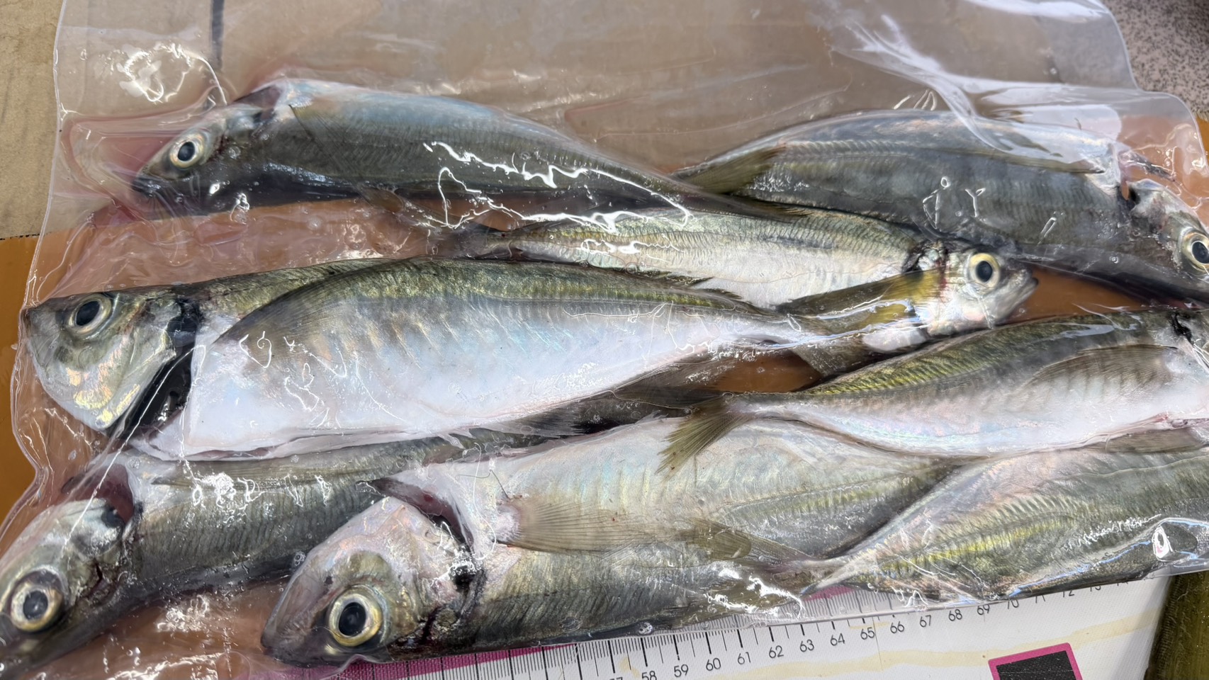 アジはカゴ釣りで、ちょっと尺に足りないサイズ