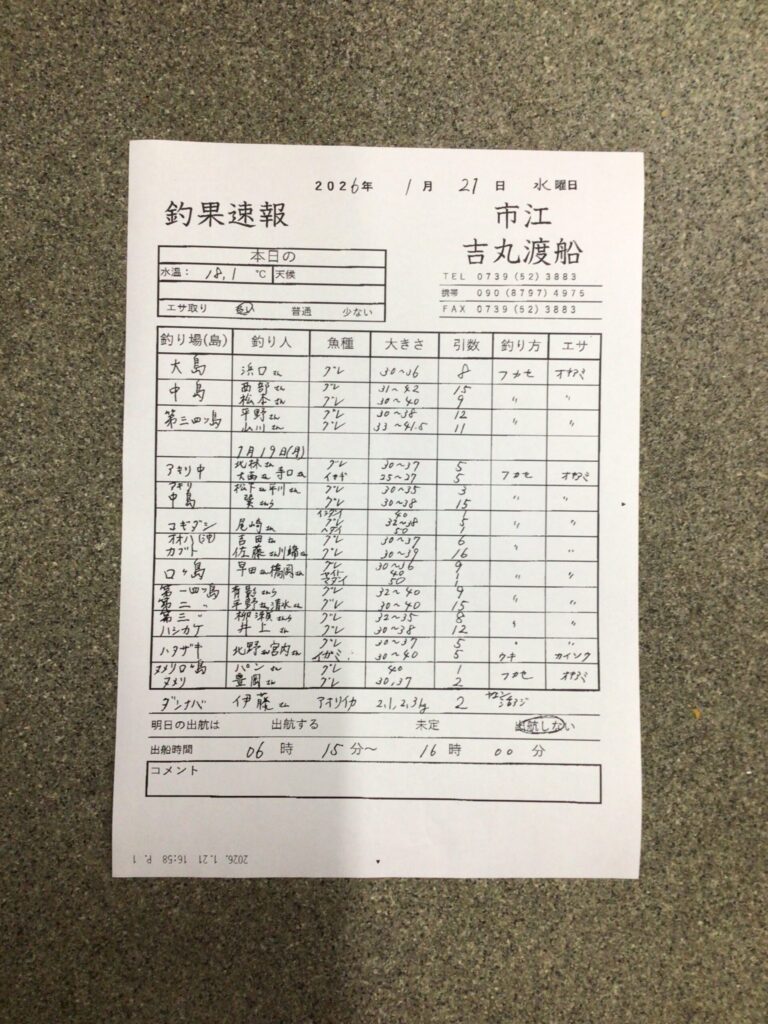 1月19・21日 白浜町市江 吉丸渡船。フカセ釣りパラダイス。