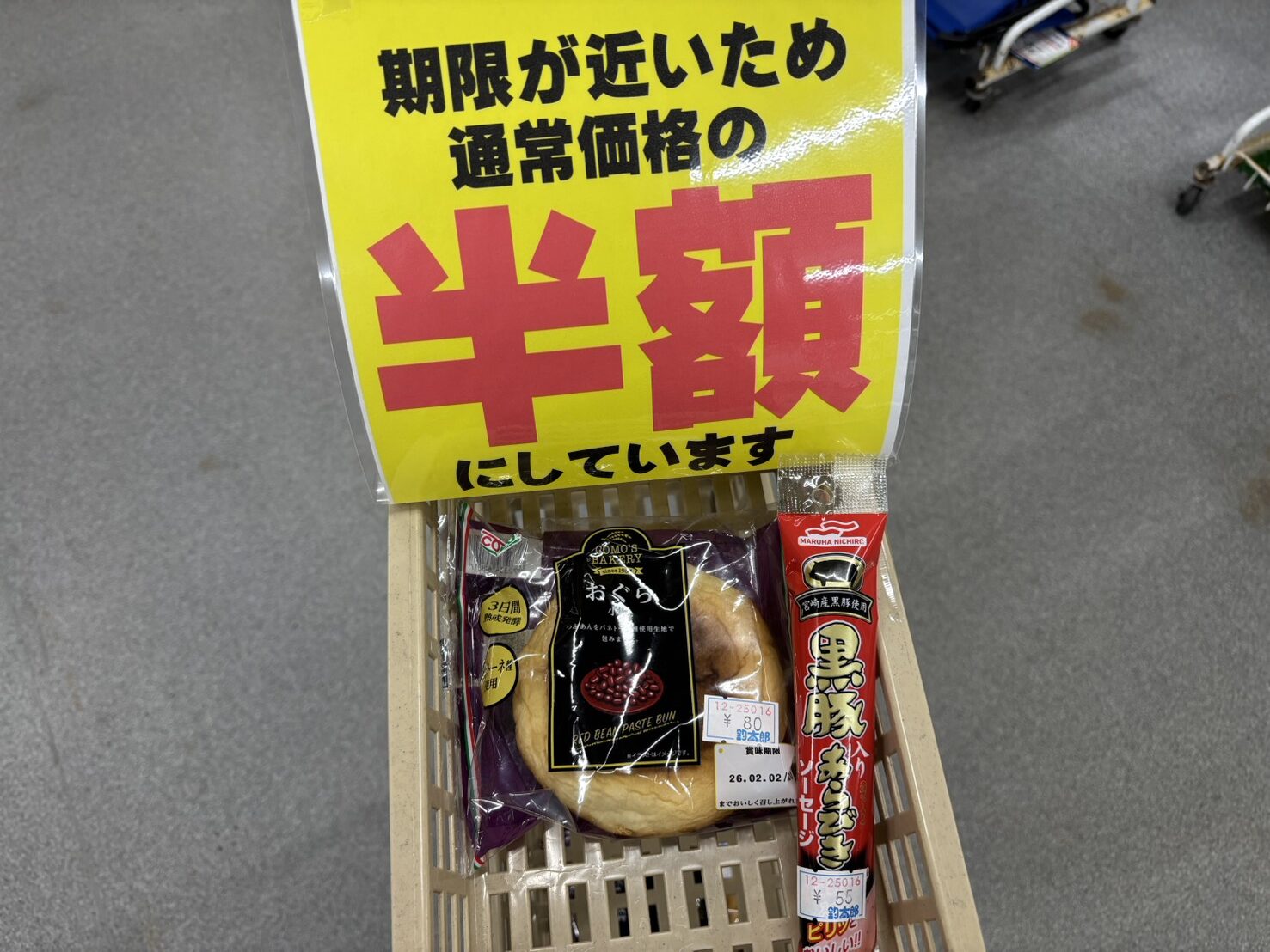 期限が近い為、通常価格の半額で提供しています。