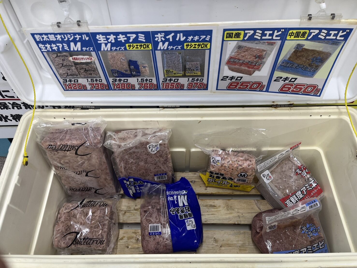 白浜店お昼の解凍エサ状況は全種ラインナップございます!