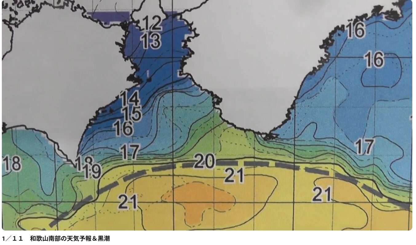 黒潮が接岸してたのは、もう8年も9年も前なので、現在この水温は高いのか、低いのか!? 海況・天候 2026.01.28 ↑こちらは、昨日の水温図 みなべ16度、白浜17度、すさみ18度くらいです。 ↓今から12年前 2014年1月11日の水温図 17度のラインがみなべ周辺 すさみ辺りが19度くらい。 黒潮が接岸している間は、水温があまり下がらない傾向となりそうです。