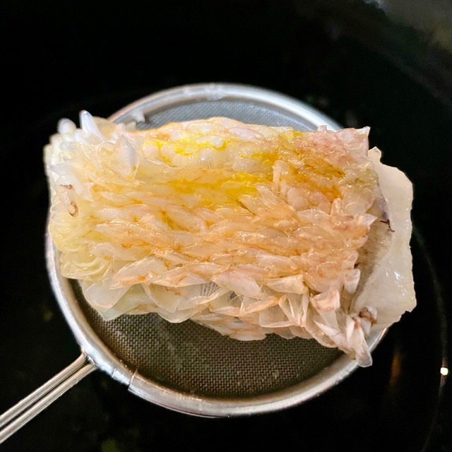 甘鯛はどの料理にもあう高級魚です! スタッフの自宅料理 2026.02.01 鱗が付いたまま油をゆっくりあびさせると鱗がぱりぱりになります、 見は少し半生よりもしっかり火を通したほうがこの料理は美味しいです。