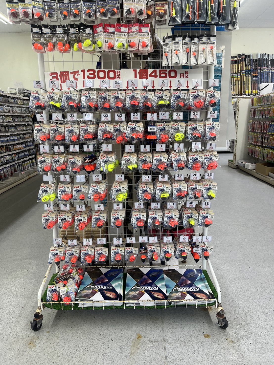 釣太郎では両店共に1個450円の安価なウキも販売中です!また1回の会計で3つご購入されると1300円とお得になるキャンペーンも開催中!!