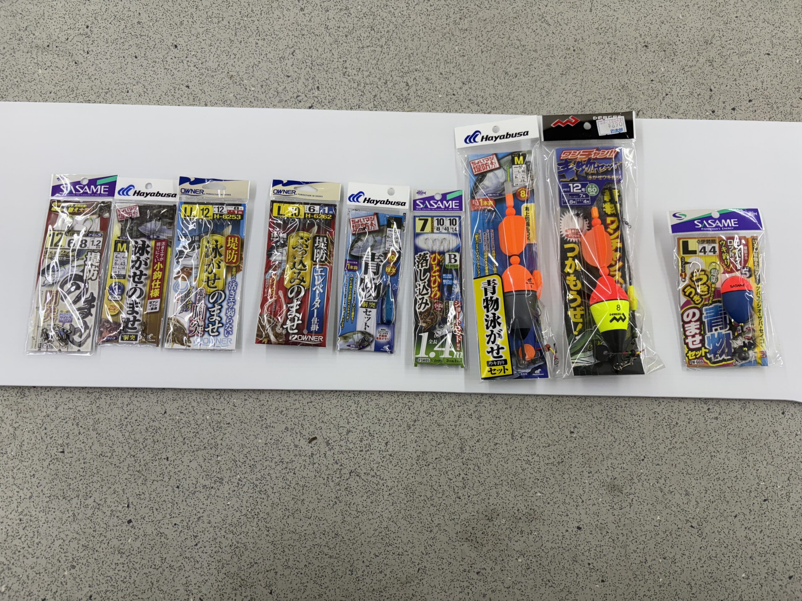 青物のませ仕掛け多数取り揃えております!! 釣具、エサ紹介 2026.02.06 青物のませ行かれる方、増えております!! 堤防からも青物狙いたい・・ そんな方に、のませ釣りのセット仕掛けお勧めします!! 種類も多数取り揃えております!! 堤防から一発大物狙ってみませんか? 初心者の方でも狙えるチャンスあり!! 是非、ご購入して行ってみてください!!