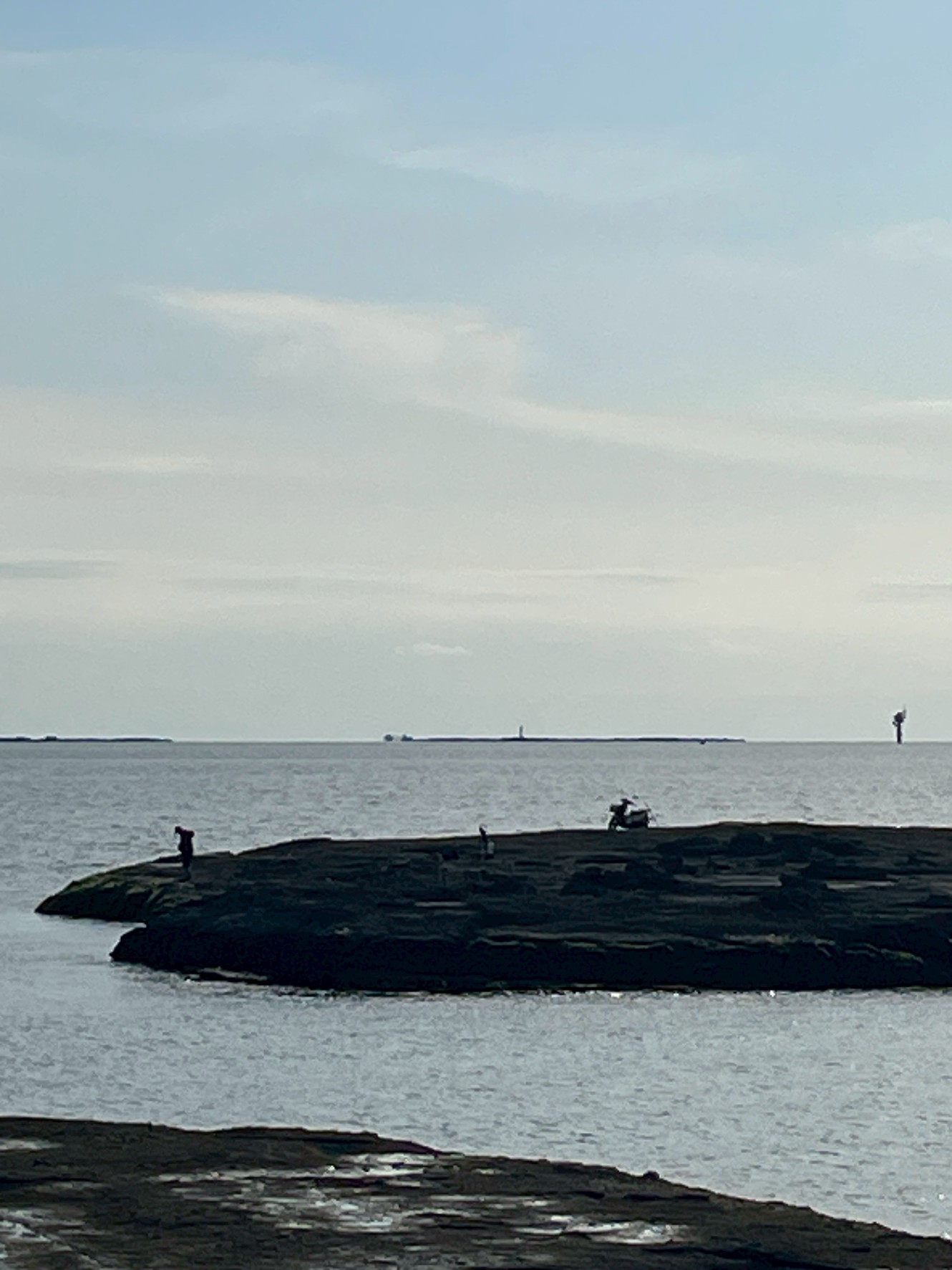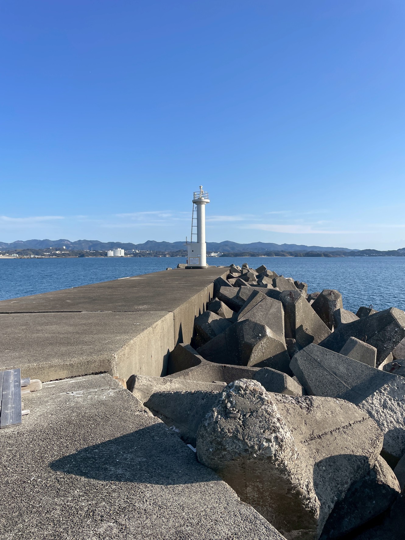 先日天神崎に行ってみました 釣り場紹介 2026.02.09 ぽかぽか陽気につられて 田辺市の天神崎・元島・江川漁港に行ってきました 天神崎・元島はご覧の通り 低くて平らで歩いて行きやすい磯で アオリイカの聖地でもあります ホントにバイクで磯まで行けるんですね! ちょうど、ヤエン釣りの人にアタリがありました 残念ながらバレたようです 江川漁港の白灯台です