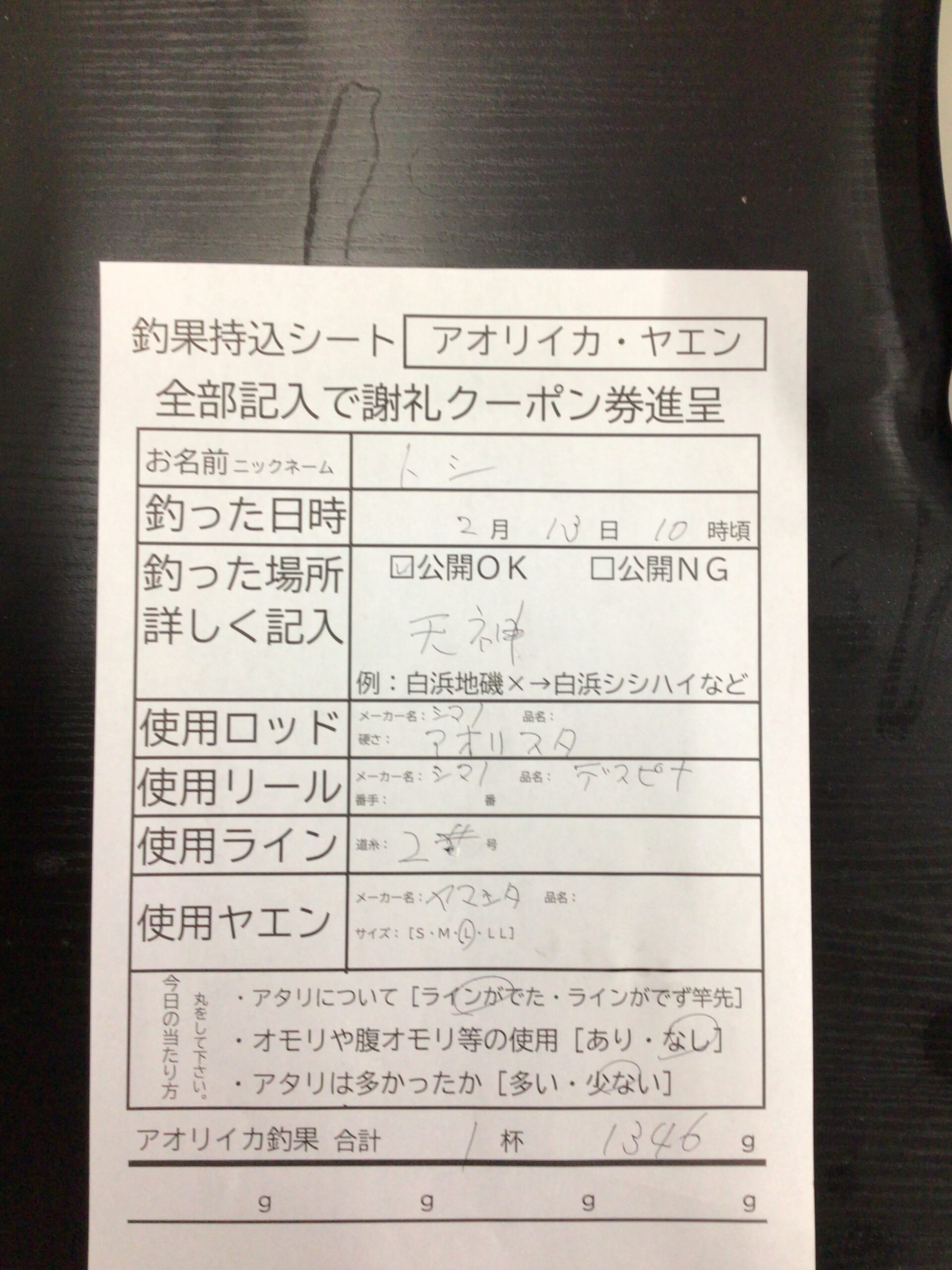 2/13 一本松漁港にてアオリイカ釣果。