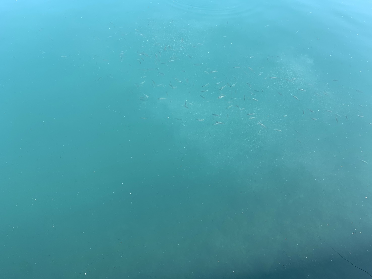【2/14お昼の新芳養漁港の様子】15cmくらいの青アジ湧き、バリコなど……