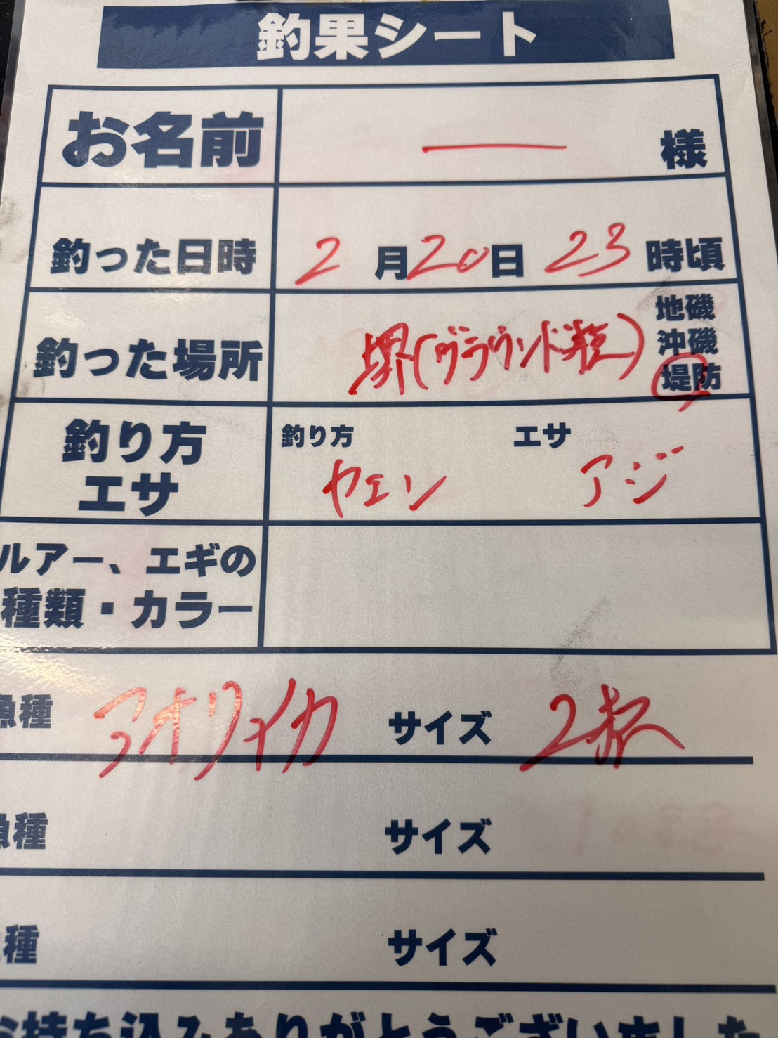 イカ釣果