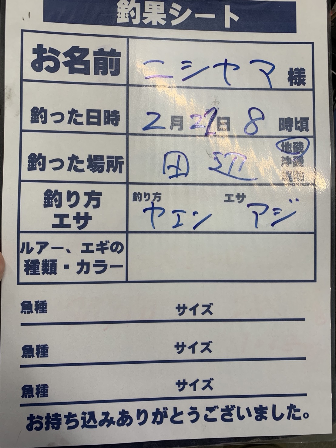 2/22 アオリイカの釣果2杯で712g 天神崎、ヤエン釣りにて