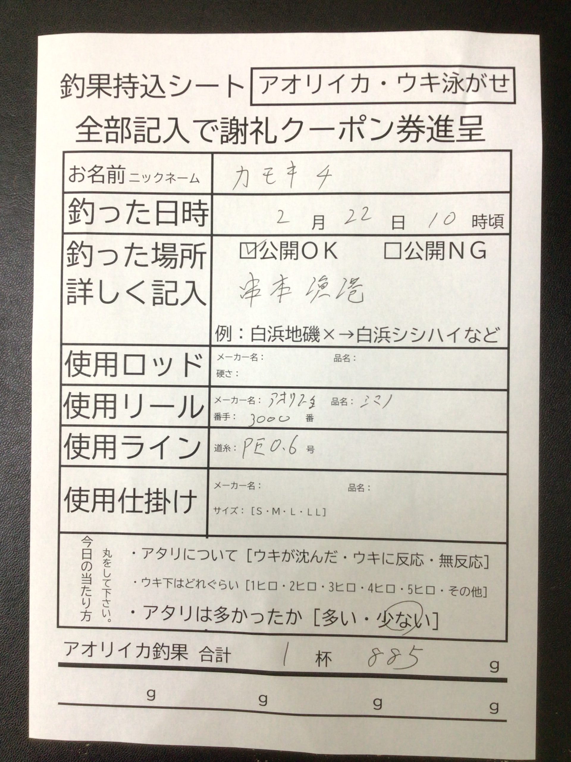 2/22 アオリイカの釣果 885g 串本漁港、ヤエン釣りにて