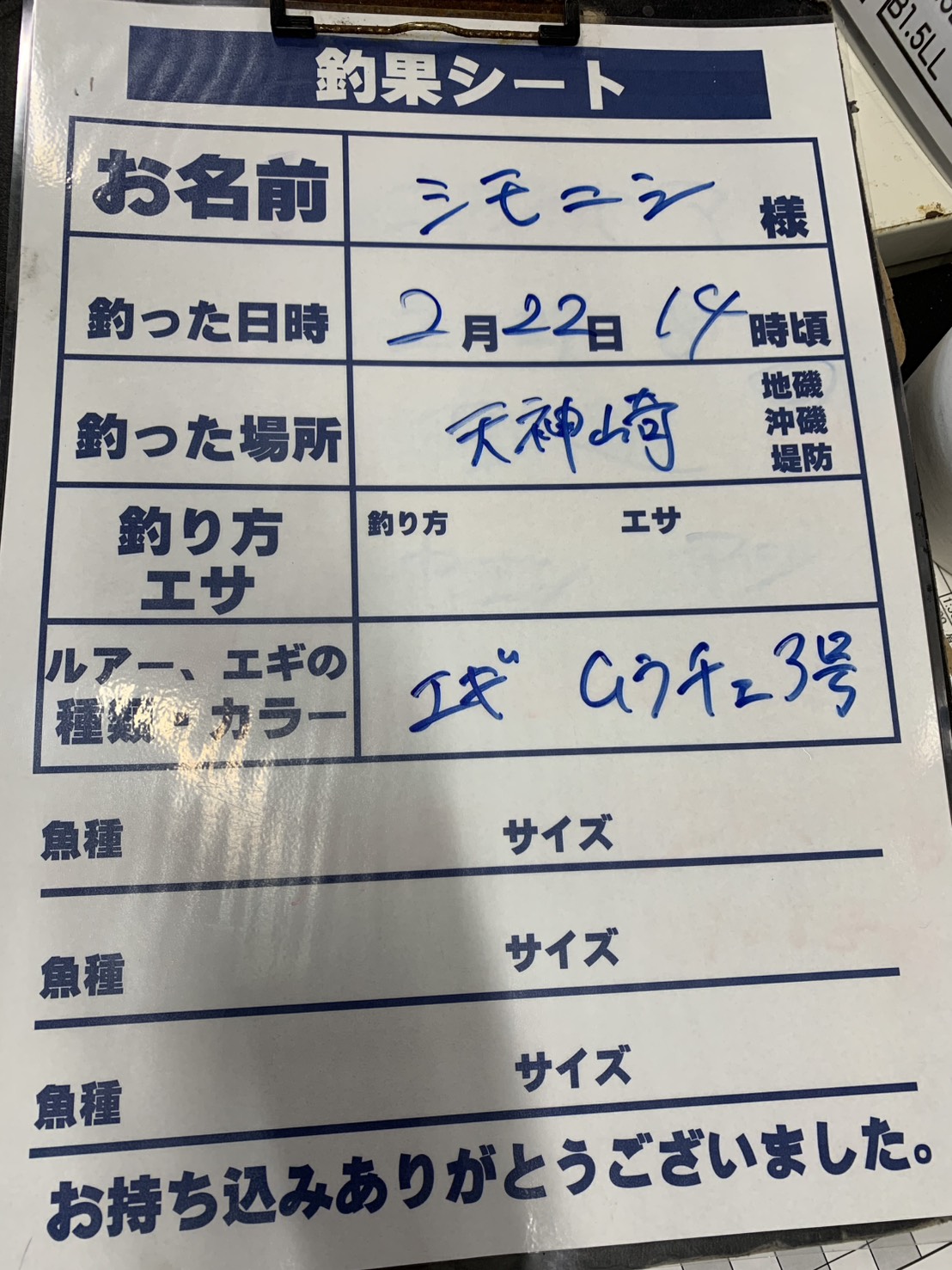 2/22 アオリイカの釣果256g 天神崎でエギング