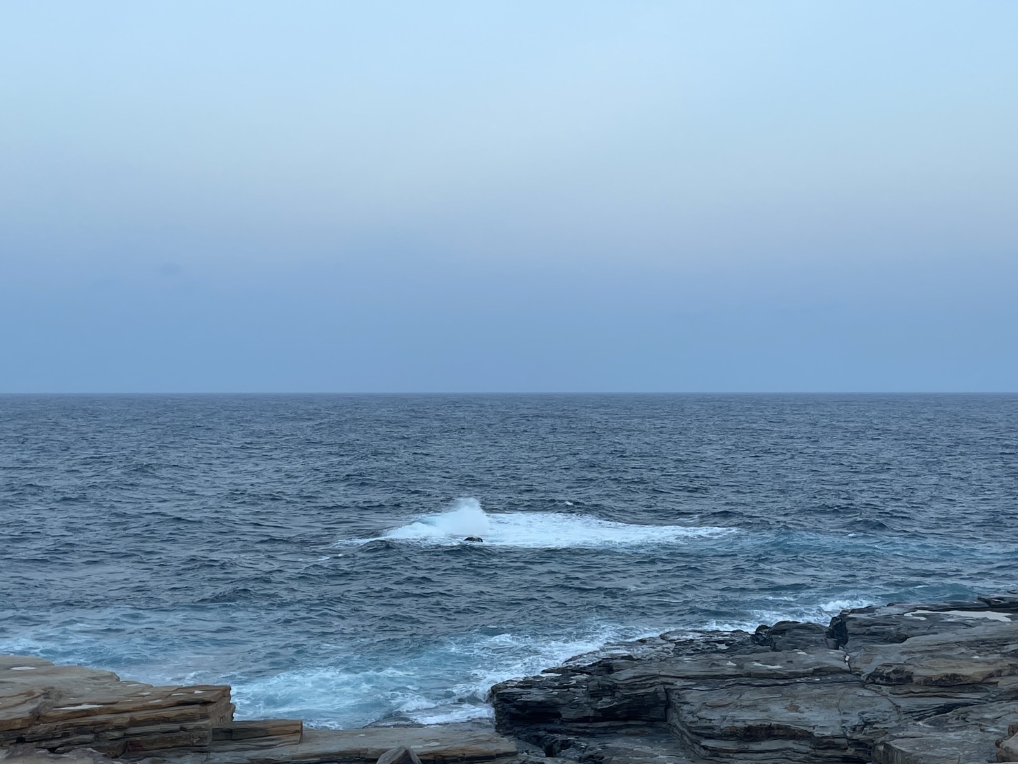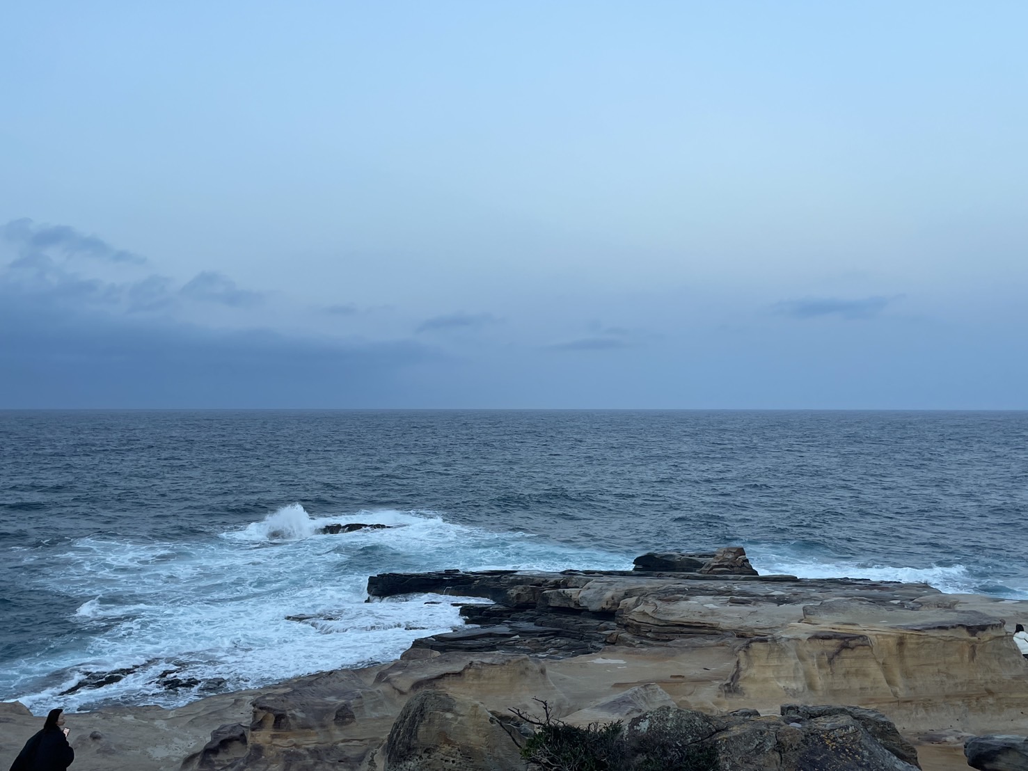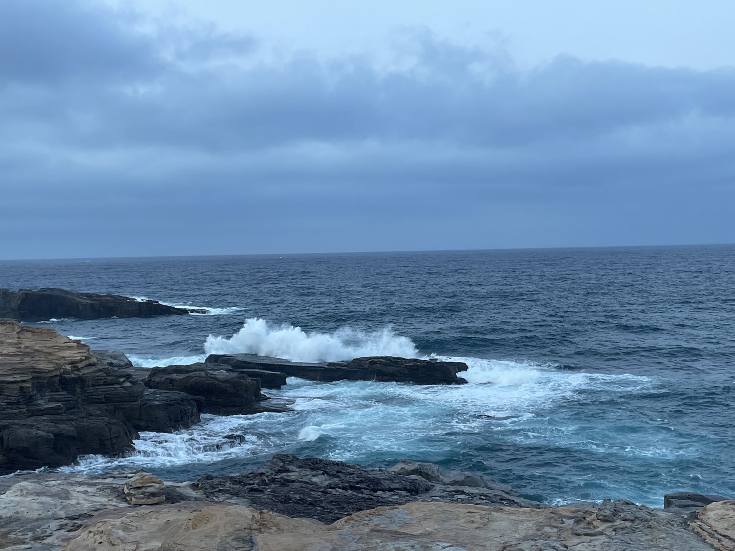 【白浜千畳敷定点観測】今朝は気温が18度もあります。 風はほとんどありませんが、海は荒れています。