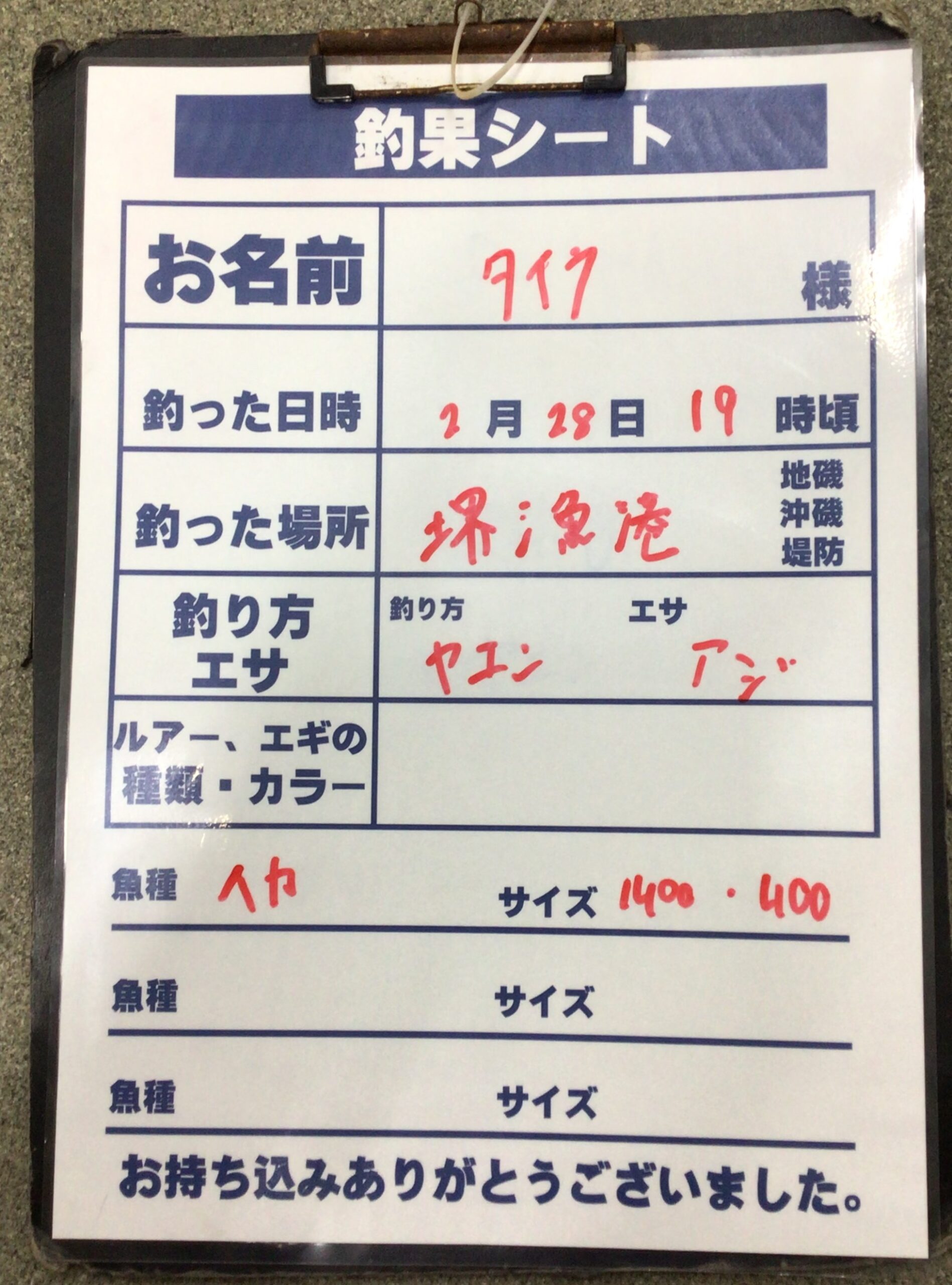 2/28 場所非公開ですが、アオリイカ釣果ありました。
