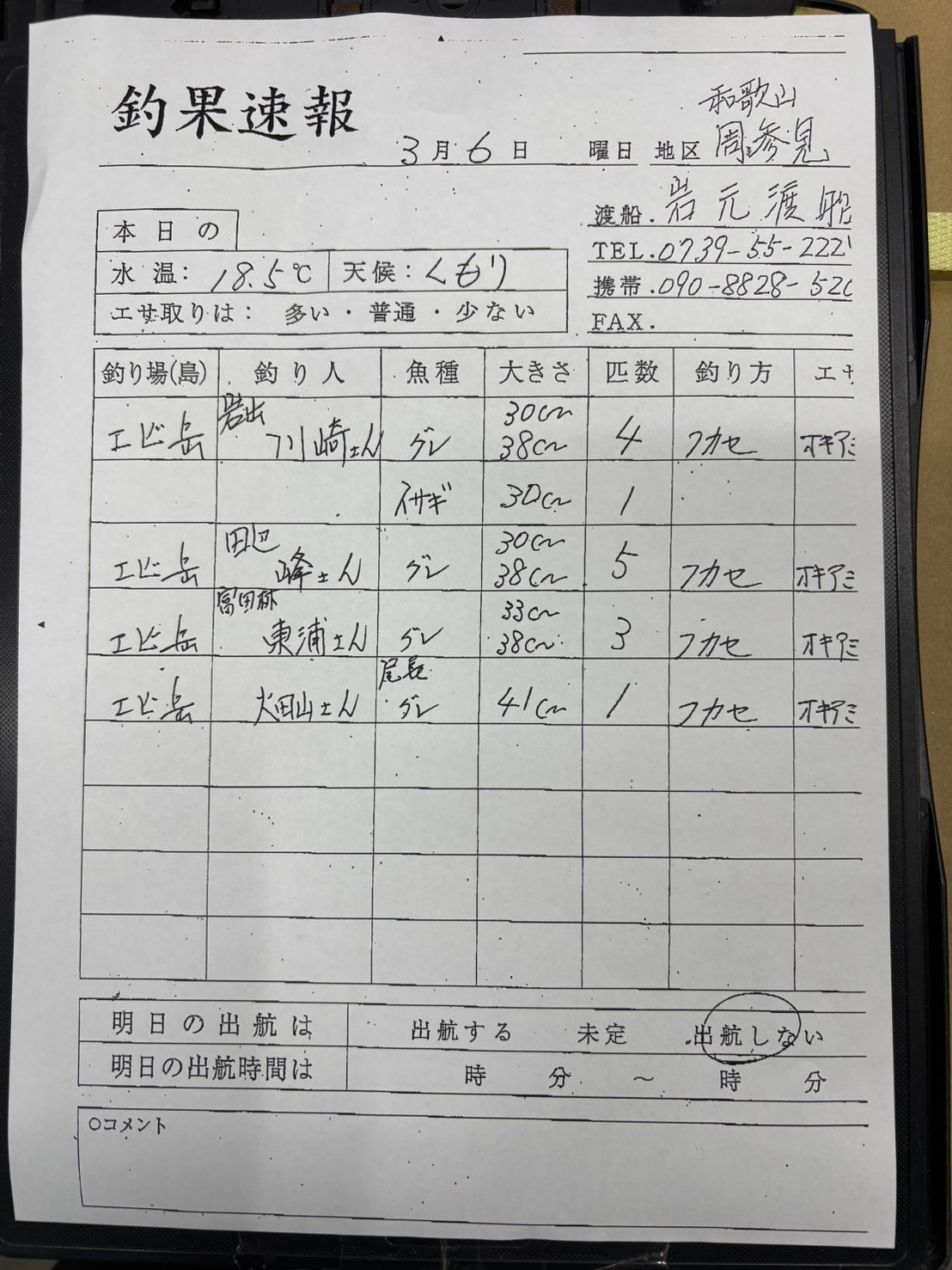 明日3/7 すさみエリア 岩元渡船さん 出航しないです。