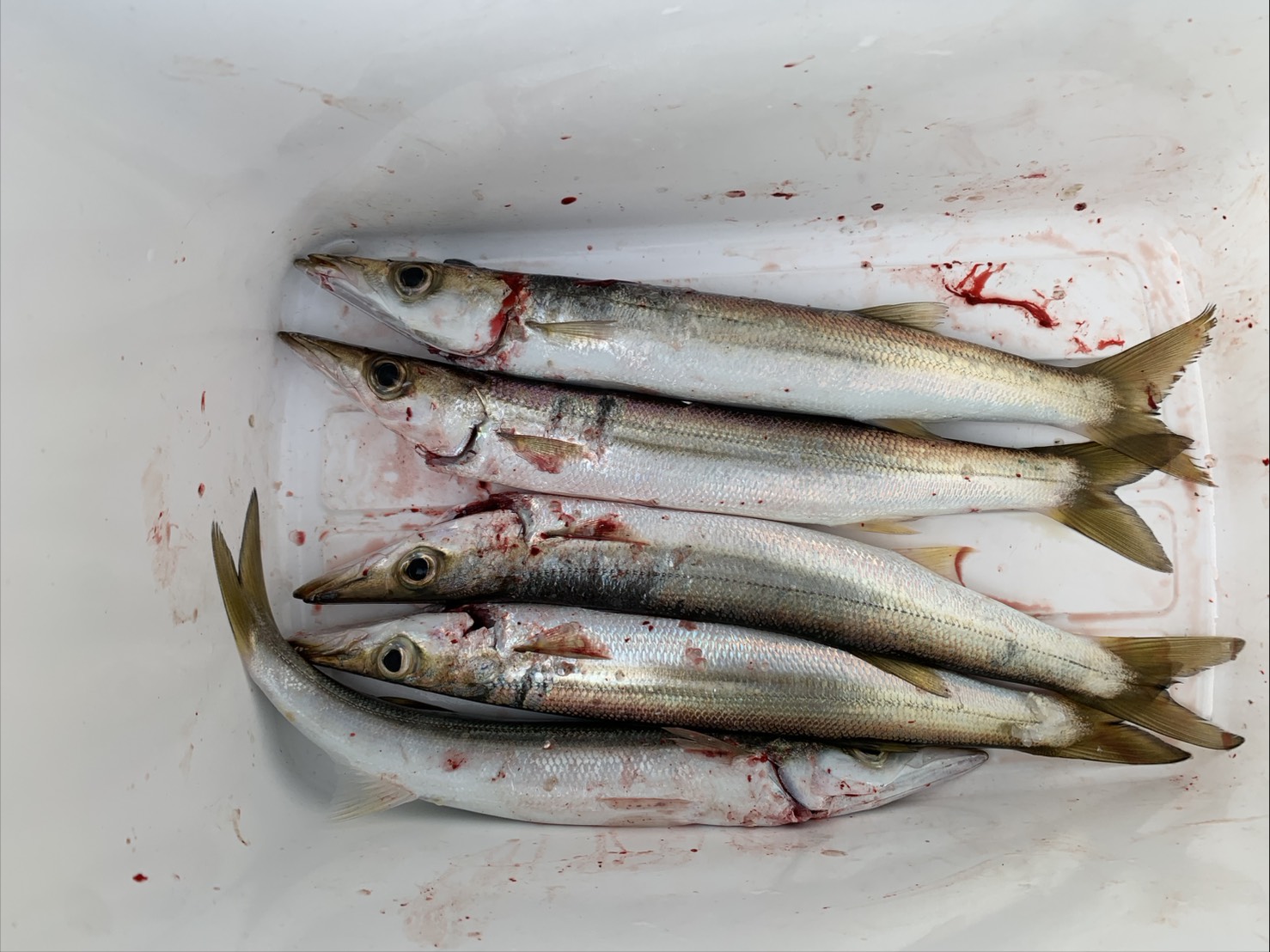 3/8(土)夕方 堺漁港 お客様のカマス釣果 写真撮影させていただきました! 波止釣り・サーフ釣り釣果 2026.03.09 風が強かったので4gのジグヘッドに、ワームで釣れたようです。 夕方16時くらいに釣れたようです。