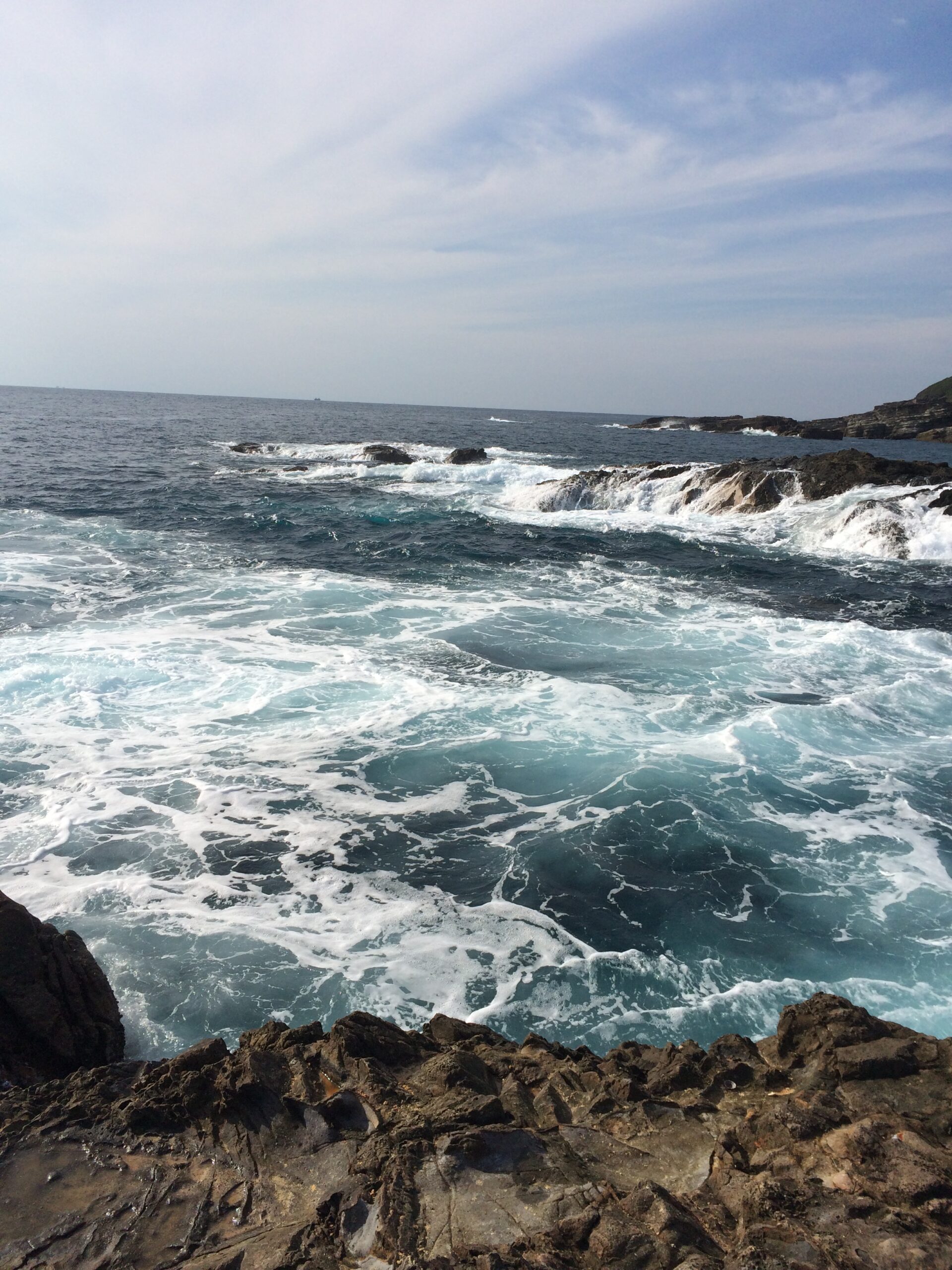 今朝は大時化でしたが、少しずつ波が落ち始めています。