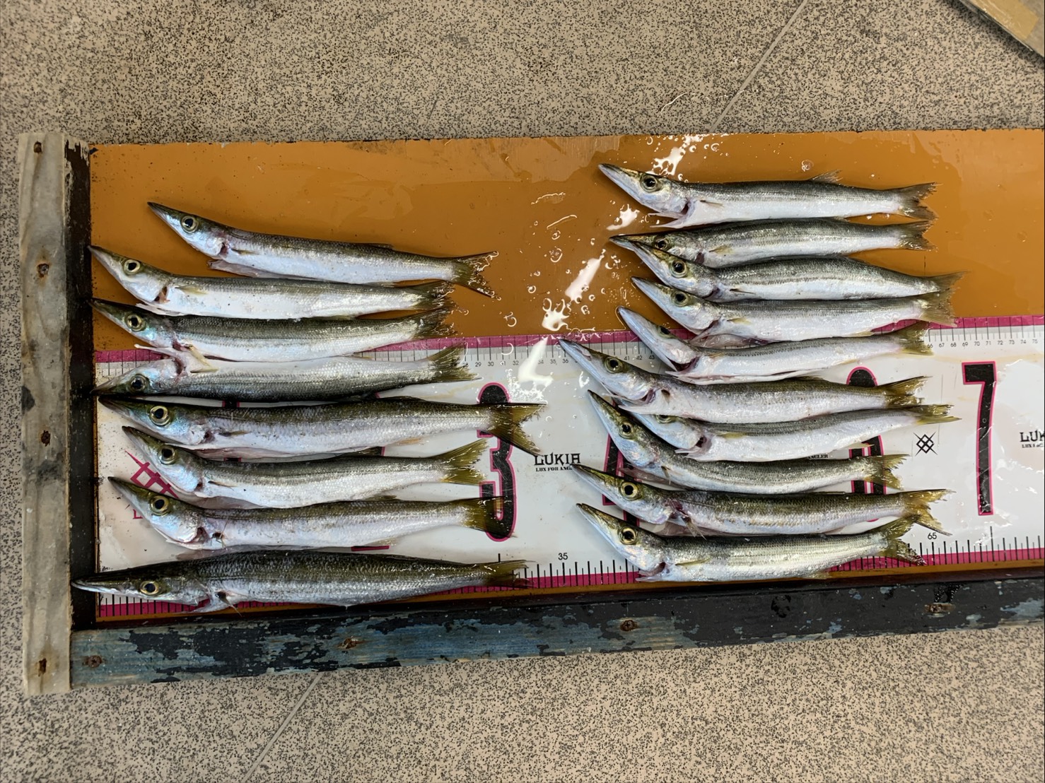 沢山湧いているのに釣れないという、堺漁港のカマス。