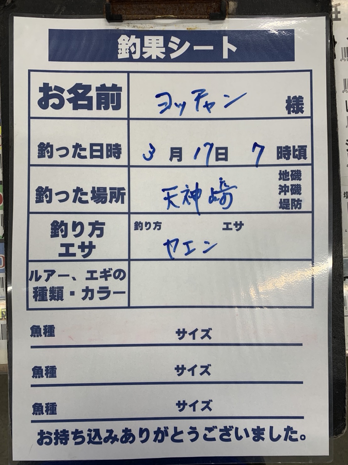 3/17 アオリイカの釣果1000g 天神崎、ヤエン釣りにて