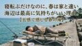 寝転ぶだけなのに、春は家と違い海辺は最高に気持ちがいい