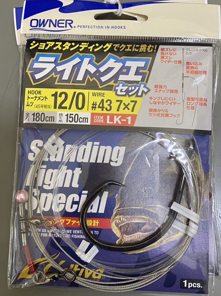 この仕掛けの最大の特徴は、ショア(岸)からのスタンディングファイトを想定して作られている点です。 パッケージにある「Standing Fight Special」の文字通り、手持ちの竿で巨大魚の突っ込みを受け止め、真っ向勝負を挑むための強度が備わっています。