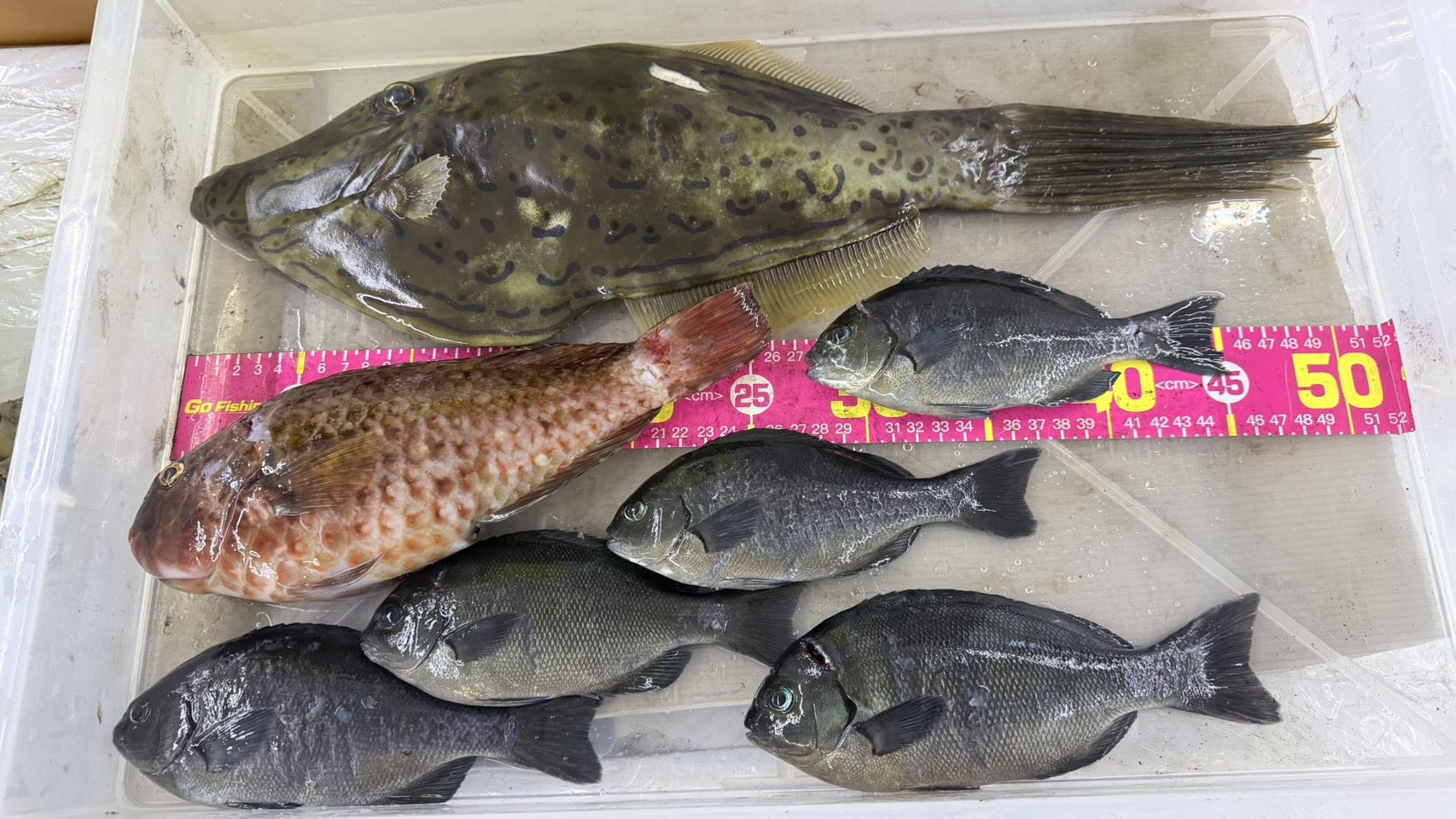 3/27白浜町椿でイガミ、尾長グレのフカセ釣りチュ陸 グレ・チヌ、鯛系の釣果 2026.03.27 ソウシハギについては、ウスバハギと間違えていたようです。 ソウシハギは内臓が猛毒と言われています。 お客様のご希望で、ソウシハギは当店で処分させていただきました。
