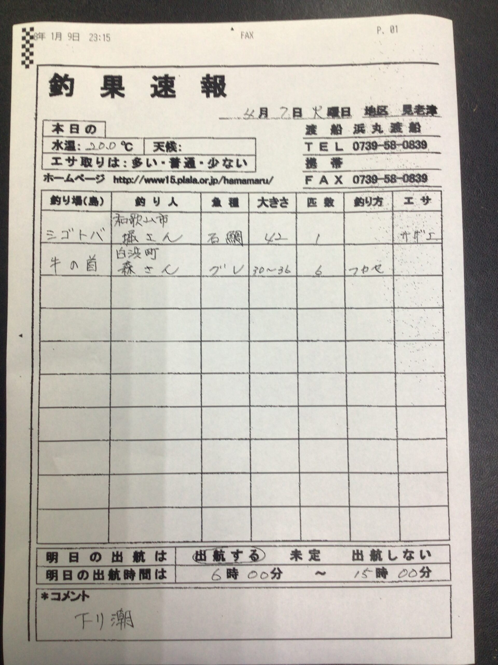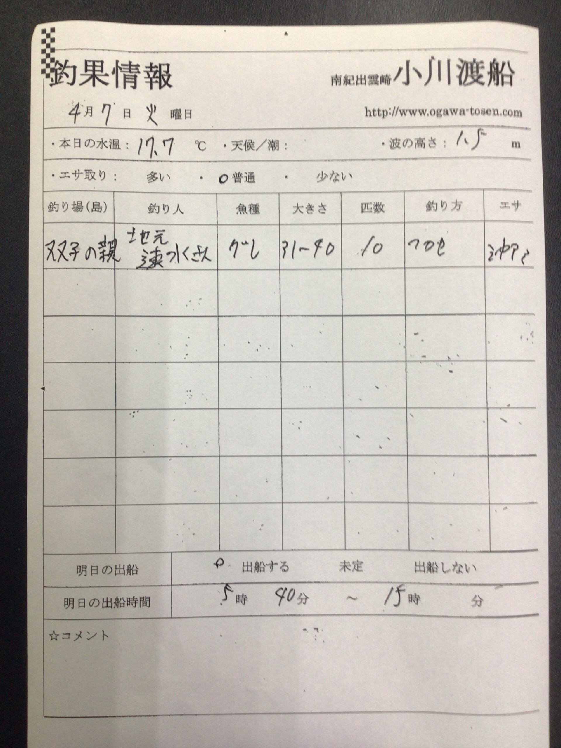 4/7釣果一覧 明日は出船予定です。