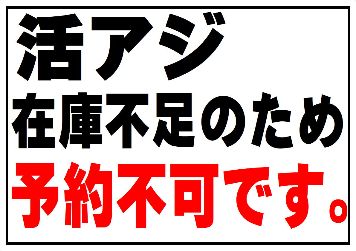 活アジ不足の為、ご来店前に在庫確認をお願い致します。
