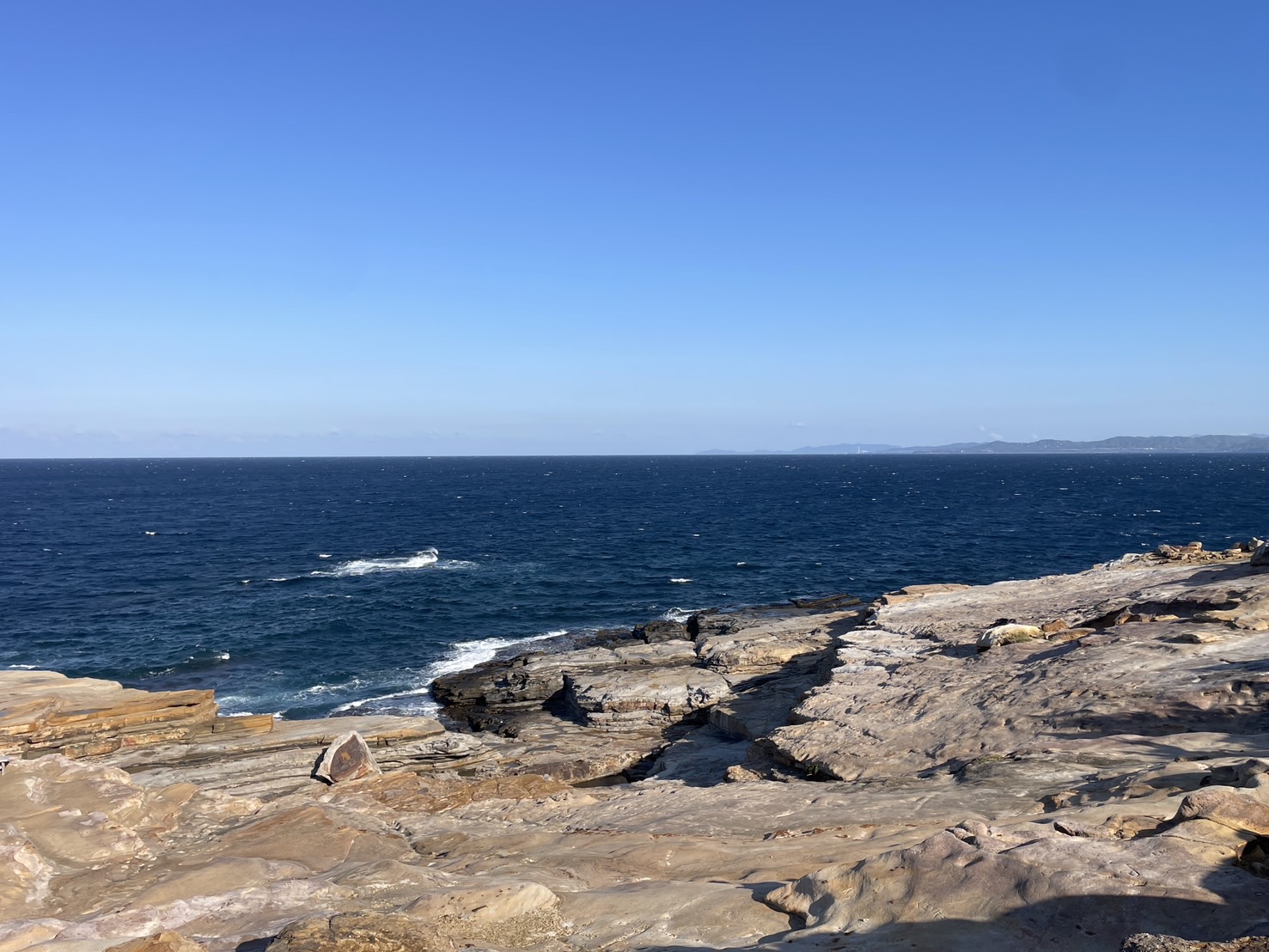 今朝の白浜千畳敷は風がとても強く吹いています。波も少しウネリがあるようです。気温は17度あり、とても暖かい朝です。