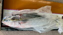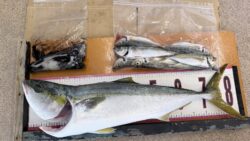 青物釣果 1/21田辺新芳養漁港にて、釣ったカマスの泳がせでブリ85㎝、5.4キロと尺近いアジとアオリイカの釣果