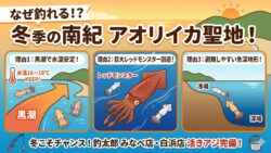 アオリイカ生態、釣り情報関連 【冬でも釣れる!】南紀はアオリイカの聖地|12〜2月の釣果とその理由