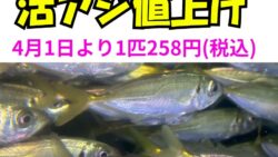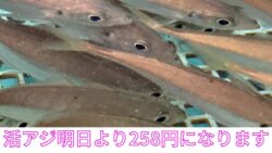 お知らせ 明日より活アジ1匹258円(税込)となります。