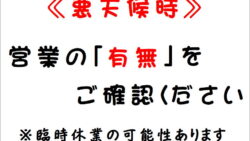 お知らせ 悪天候時は臨時休業することがあります。ホームページ、ブログ等で告知しているので、事前にご確認お願いいたします。