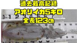 アオリイカ生態、釣り情報関連 アオリイカ過去最高持ち込み釣果の5.5キロ。全長123㎝。あまりの重さでギャフが折れたそうです。