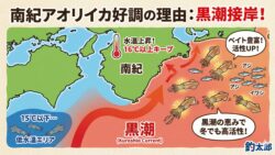 アオリイカ生態、釣り情報関連 【2026年1月南紀】例年よりアオリイカが好調なのはなぜ?黒潮接岸と水温の関係を徹底解説