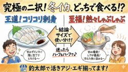 アオリイカ生態、釣り情報関連 【究極の二択】冬のアオリイカは「刺身」か「しゃぶしゃぶ」か?釣り人が教える一番美味しい食べ方