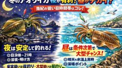 アオリイカ生態、釣り情報関連 【冬の南紀アオリイカ攻略】「夜」が最も釣れるって本当?昼のデカイカ狙いとマヅメの落とし穴を徹底解説