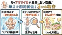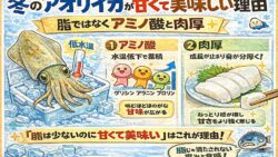 アオリイカ生態、釣り情報関連 冬のアオリイカが甘くて美味しい理由。脂ではなく「アミノ酸」と「肉厚」が決め手