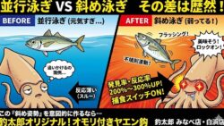 アオリイカ生態、釣り情報関連 アジの頭を浮かせて泳がせると、アオリイカの食いつきが良くなる理由。 オモリ付きヤエン針が最適解である科学的根拠