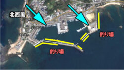 釣り場紹介 北西風に強い釣り場堤防紹介。冬季の季節風が吹いたら、和歌山南紀白浜町古賀浦も使えます。