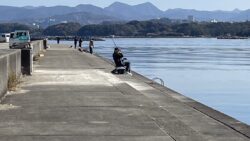 釣り場紹介 現在の新芳養漁港の様子です!南西の風が吹いていますが釣り人います!