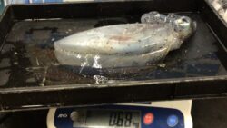 イカ釣果 10/28 みなべ一本松漁港でエギングにてアオリイカ834g