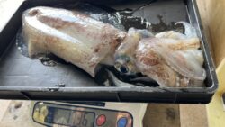 イカ釣果 田辺磯間黒田渡船さんで、アオリイカ3キロオーバーの釣果。
