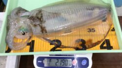 イカ釣果 地元スーパーでもアオリイカ キロあたり5000円で販売!2キロのアオリイカは1万円オーバー